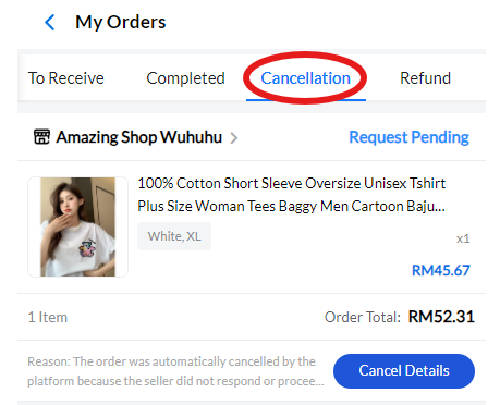 Step 2: You will be directed to the order details page, where you can view and check the cancellation information.