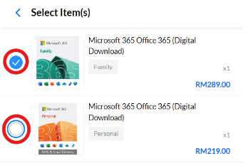 Step 3: After entering the “Request Refund” page, buyers can add more products for refund by pressing “+ Select Item(s)”, but they must be from the same order. Select additional products by clicking the circle icon beside each product and press confirm on the bottom.