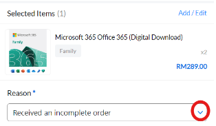 – Each product must have its own selected reason for the refund.