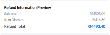 Step 5: After selecting the reason for the refund, check the total refund amount preview displayed.