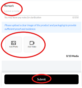 Step 6: After reviewing the refund amount, buyers can leave a remark note (up to 350 words) or optionally attach a video or image. Once you have completed this, press the “Submit” button to submit the refund request.